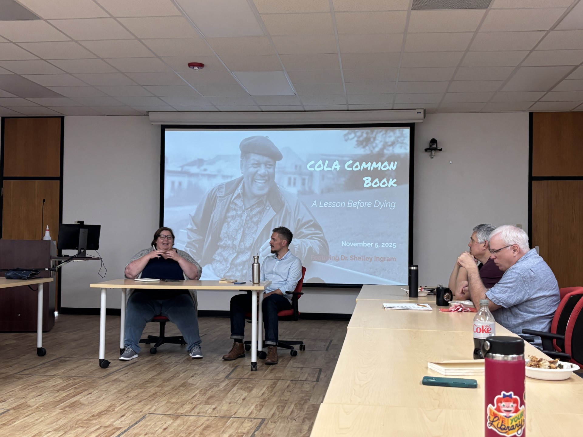 We held our second community conversation yesterday afternoon. Our discussion centered around the College of Liberal Arts Common Book, A Lesson Before Dying, and included a lively discussion about foodways and its relevance to the novel. Thank you to Drs. David Squires and Shelley Ingram (ENGL) for leading our discussion (and providing food!).