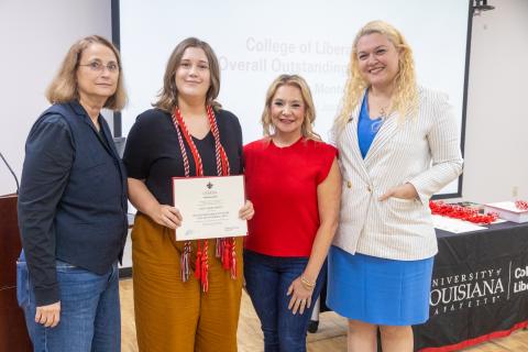 Fri, 02/20/2026 - 10:44amLast December, the College of Liberal Arts proudly celebrated academic excellence at a special pre-commencement reception honoring distinguished undergraduate award recipients, graduating master’s and doctoral candidates, and other award honorees. The event highlighted the scholarship, service, research, and academic achievements that define the heart of the college. Guests gathered following the program to enjoy light desserts and recognize the individuals whose accomplishments continue to elevate the University of Louisiana at Lafayette.